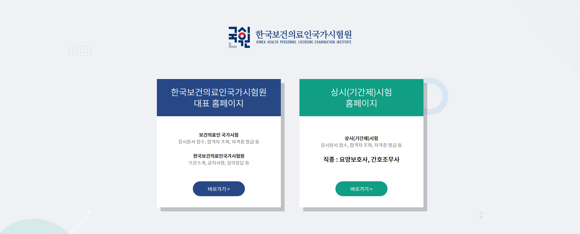 국시원 홈페이지 : 합격자 발표일 10:00부터 국시원 홈페이지 [합격자조회] 메뉴를 통해 확인할 수 있습니다.