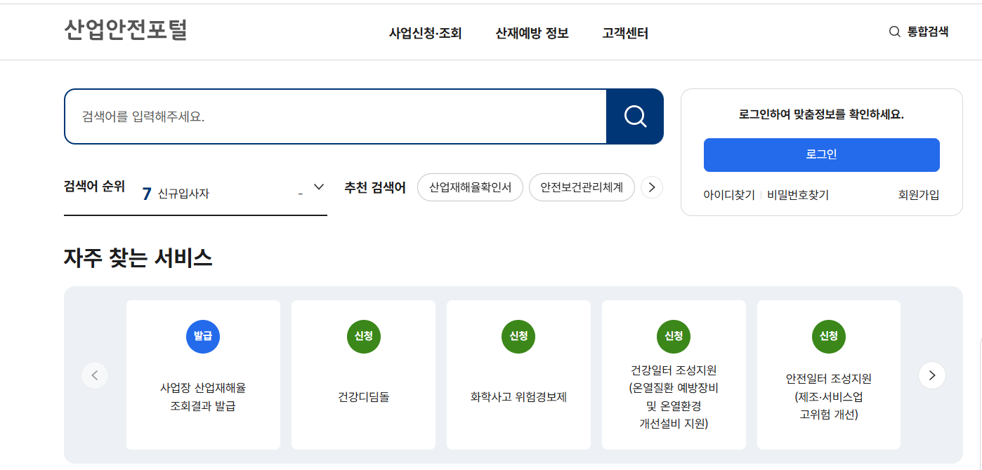 검색 기능 활용 : 만약 메뉴를 찾기 어렵다면, 시스템 내 검색 기능을 활용하여 "산업재해율 확인서" 또는 "재해율 증명" 등으로 검색하면 해당 메뉴로 바로 이동할 수 있습니다.