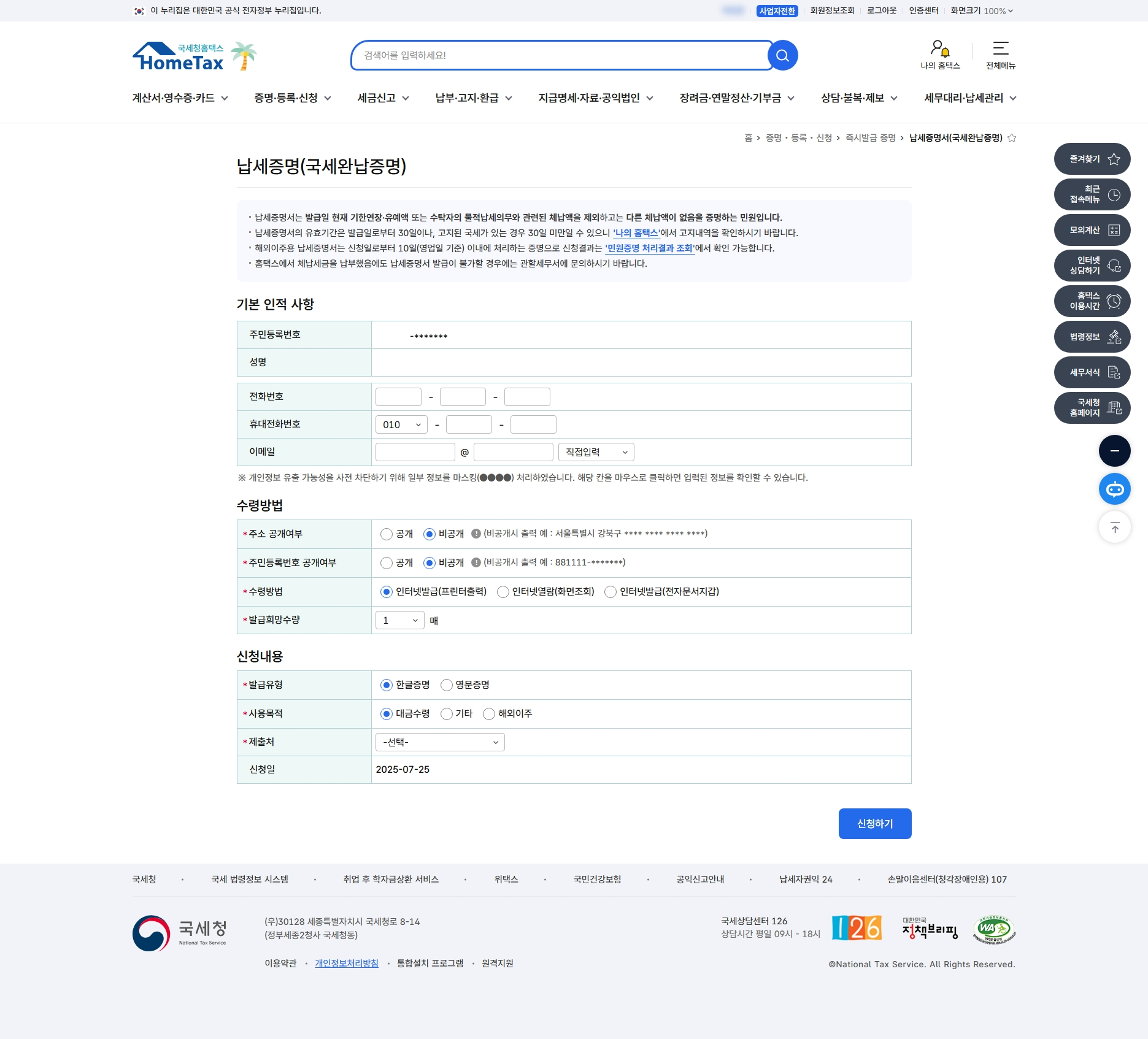 정확한 파일명 : 각 서류의 내용을 쉽게 파악할 수 있도록 파일명을 명확하게 지정하는 것이 좋습니다. (예시 : 사업자등록증명원_홍길동_20250725.pdf)