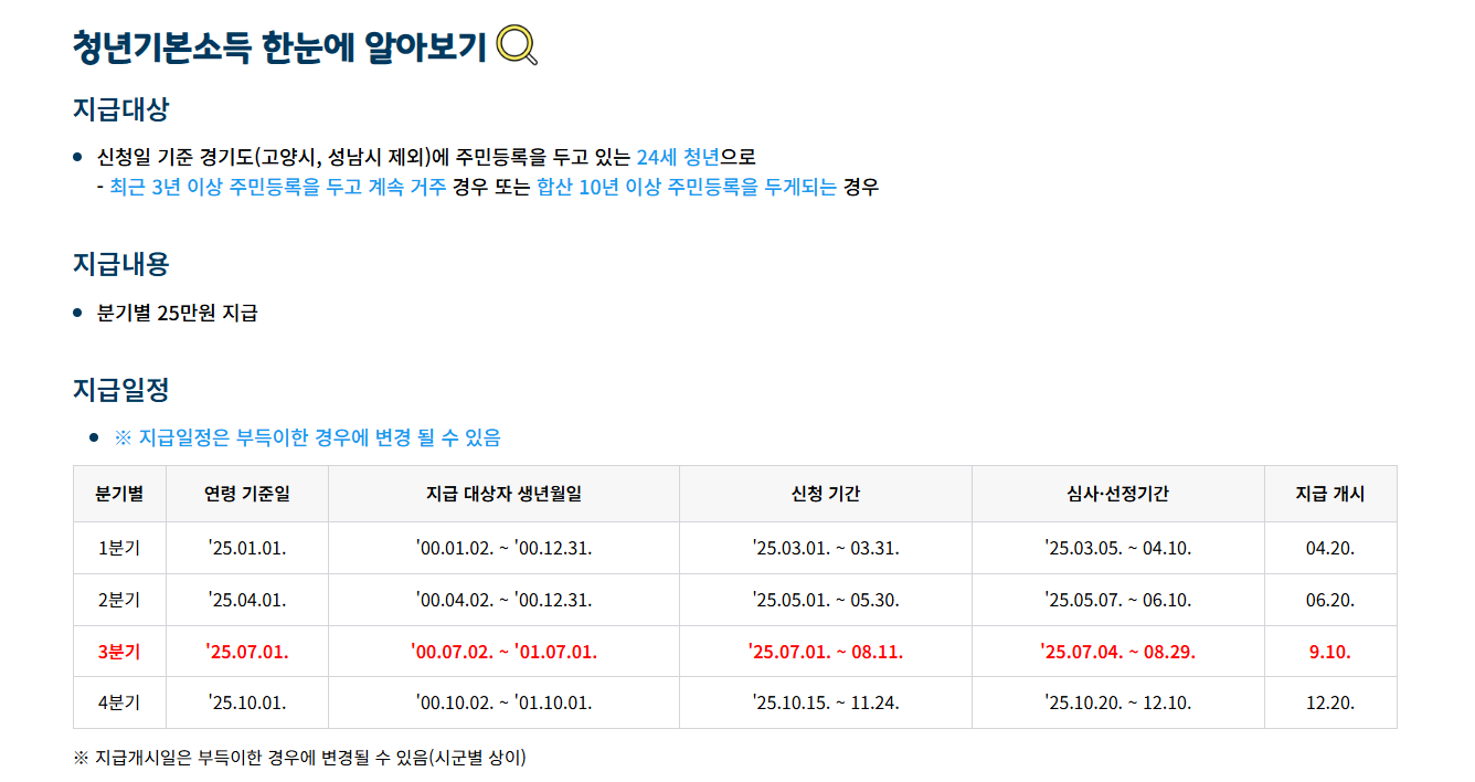 1. 경기도 청년기본소득 3분기 8월 신청 대상자
