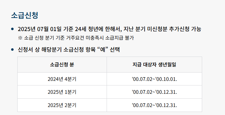 분기별 지급 : 매 분기 25만 원씩 지급되어 청년들의 안정적인 생활을 지원합니다.