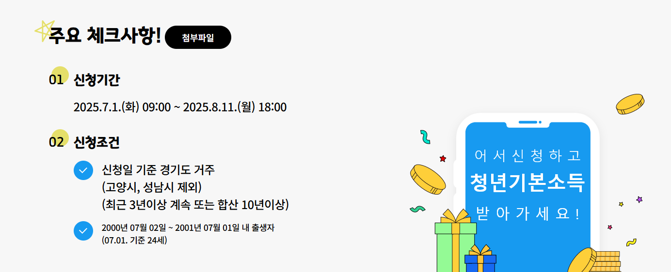 위의 세 가지 조건을 모두 충족해야만 경기도 청년기본소득 3분기 8월 신청 대상자가 됩니다. 만약 조건이 맞지 않는다면 다음 분기를 기다려야 합니다.