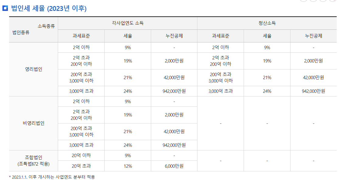 여기에 법인세액의 10%가 지방소득세로 별도 부과된다는 점을 잊어서는 안 됩니다.
